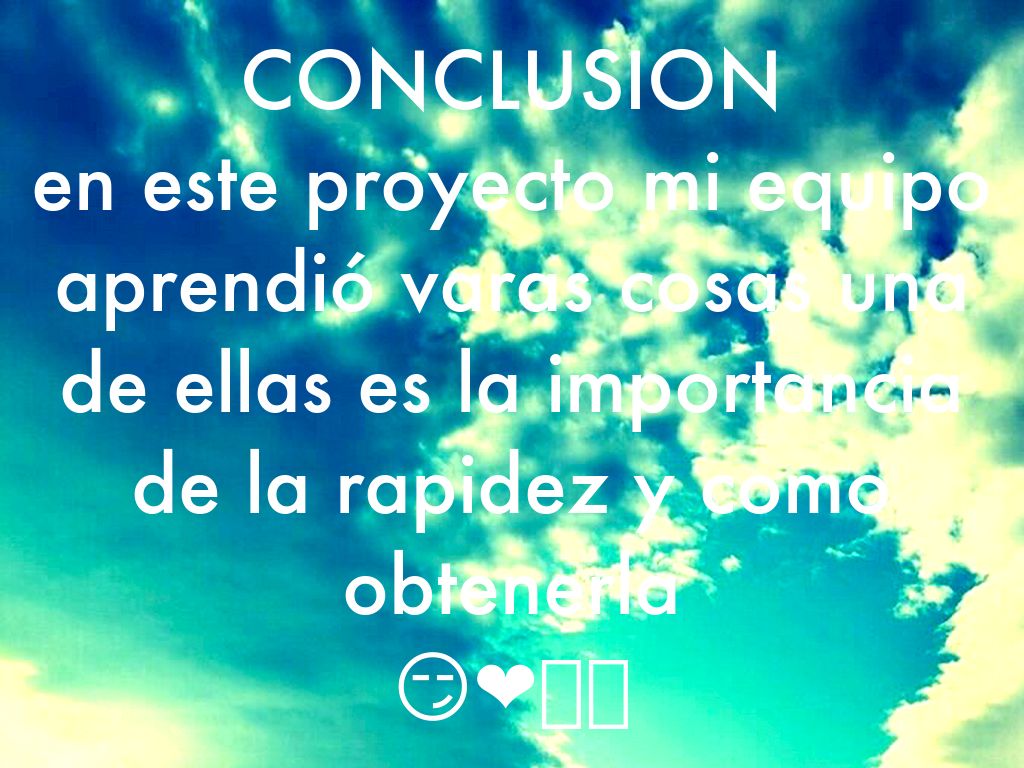 en este proyecto mi equipo aprendió varas cosas una de ellas es la importancia de la rapidez y como obtenerla