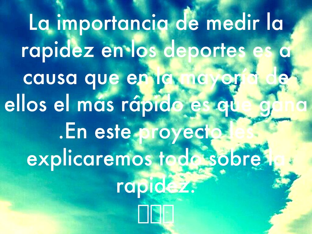 La importancia de medir la rapidez en los deportes es a causa que en la mayoría de ellos el más rápido es que gana .En este proyecto les explicaremos todo sobre la rapidez.