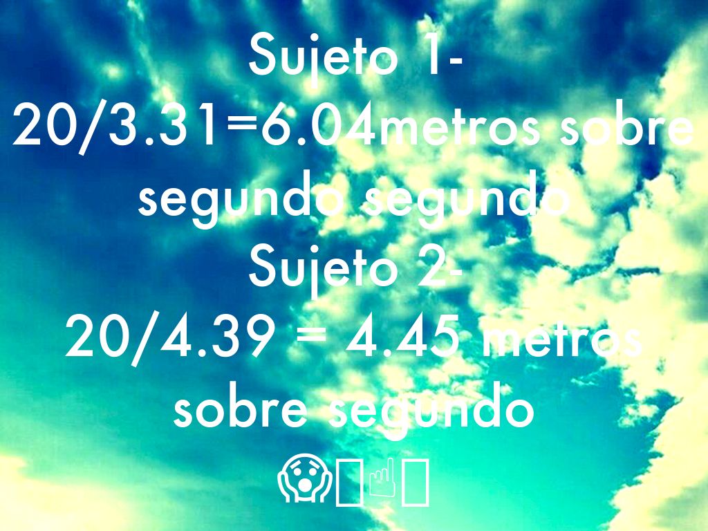 Sujeto 1- 20/3.31=6.04metros sobre segundo segundo