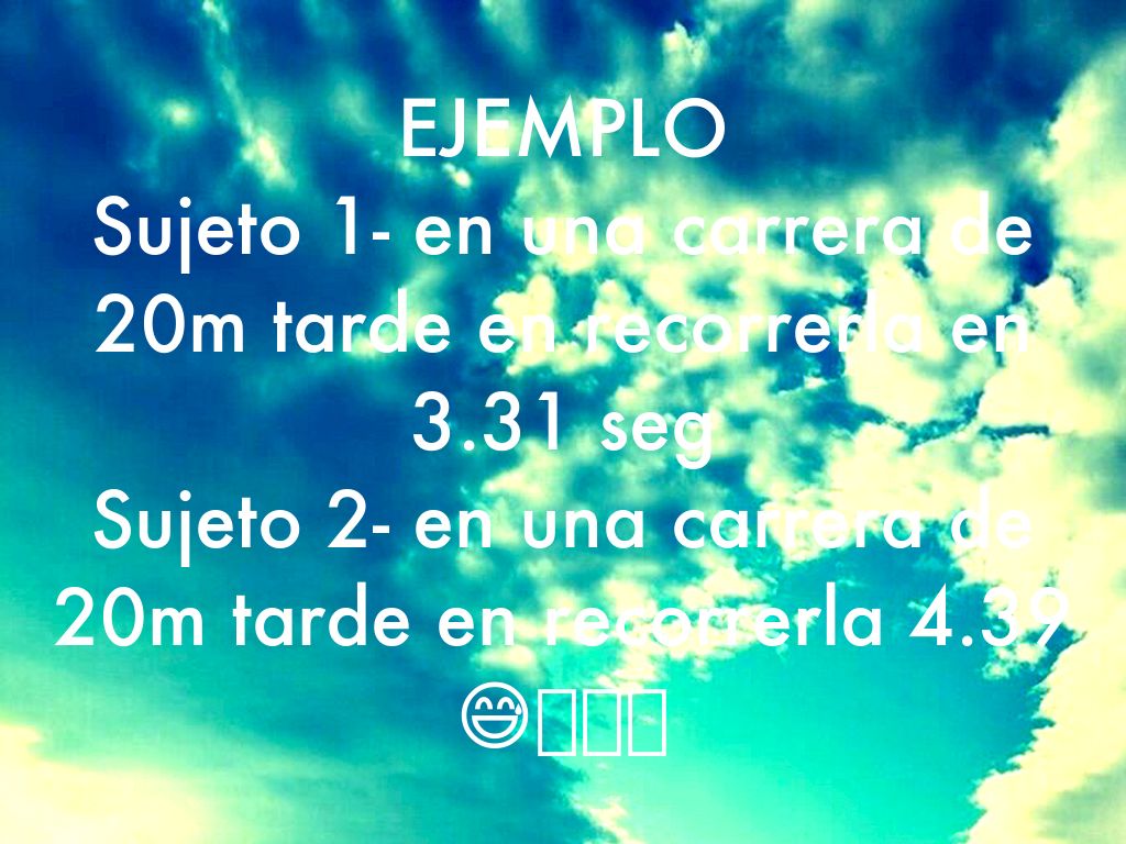 Sujeto 1- en una carrera de 20m tarde en recorrerla en 3.31 seg