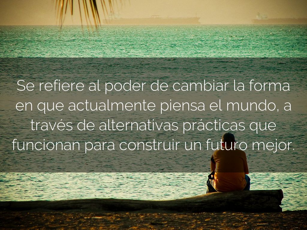 Se refiere al poder de cambiar la forma en que actualmente piensa el mundo, a través de alternativas prácticas que funcionan para construir un futuro mejor.