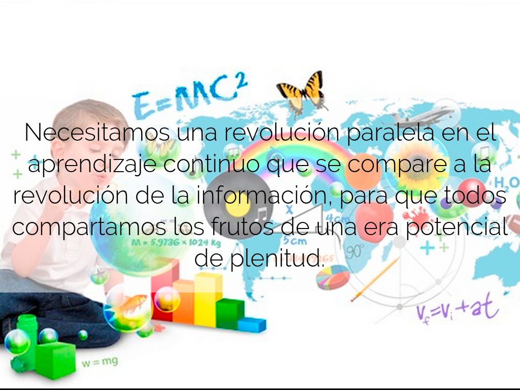 Necesitamos una revolución paralela en el aprendizaje continuo que se compare a la revolución de la información, para que todos compartamos los frutos de una era potencial de plenitud.