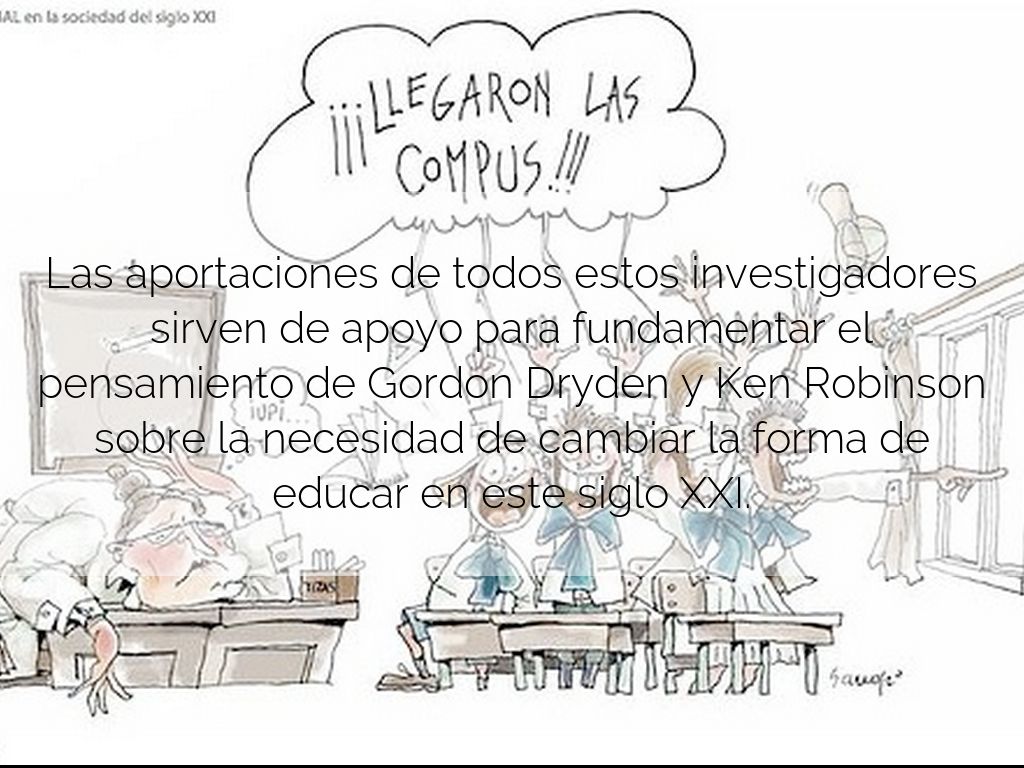 Las aportaciones de todos estos investigadores sirven de apoyo para fundamentar el pensamiento de Gordon Dryden y Ken Robinson sobre la necesidad de cambiar la forma de educar en este siglo XXI.