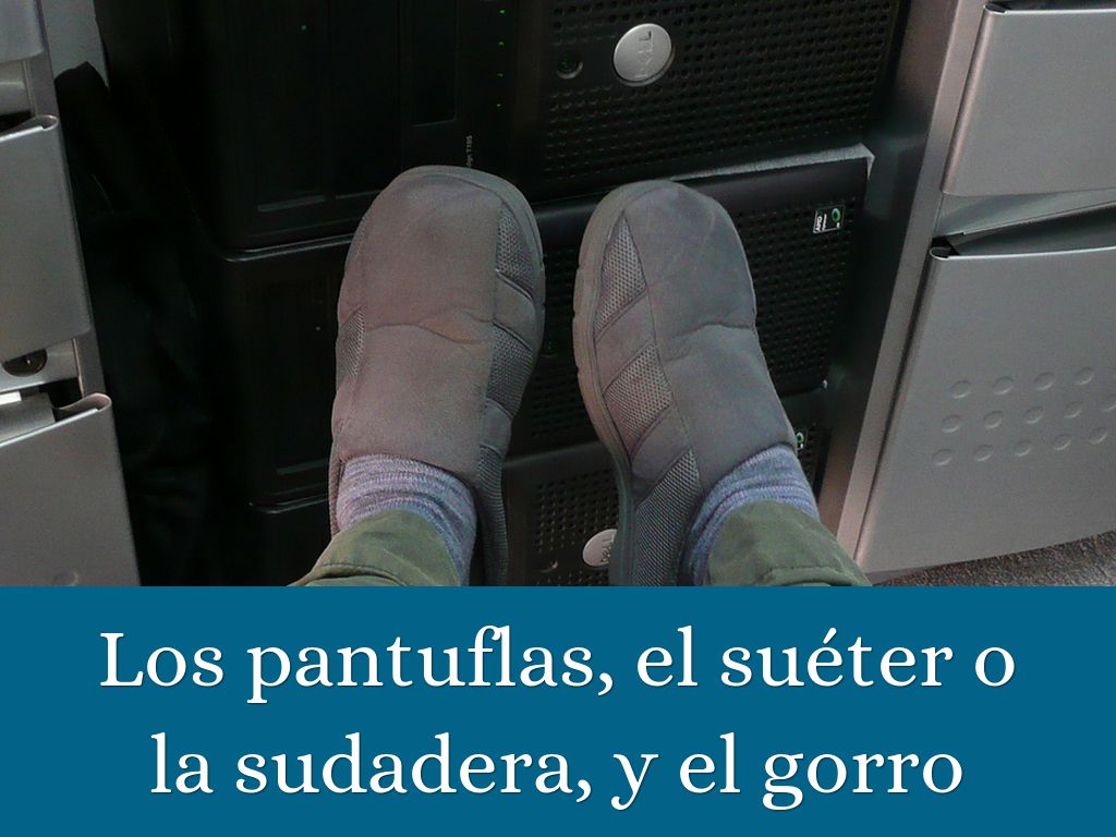 Los pantuflas, el suéter o la sudadera, y el gorro
