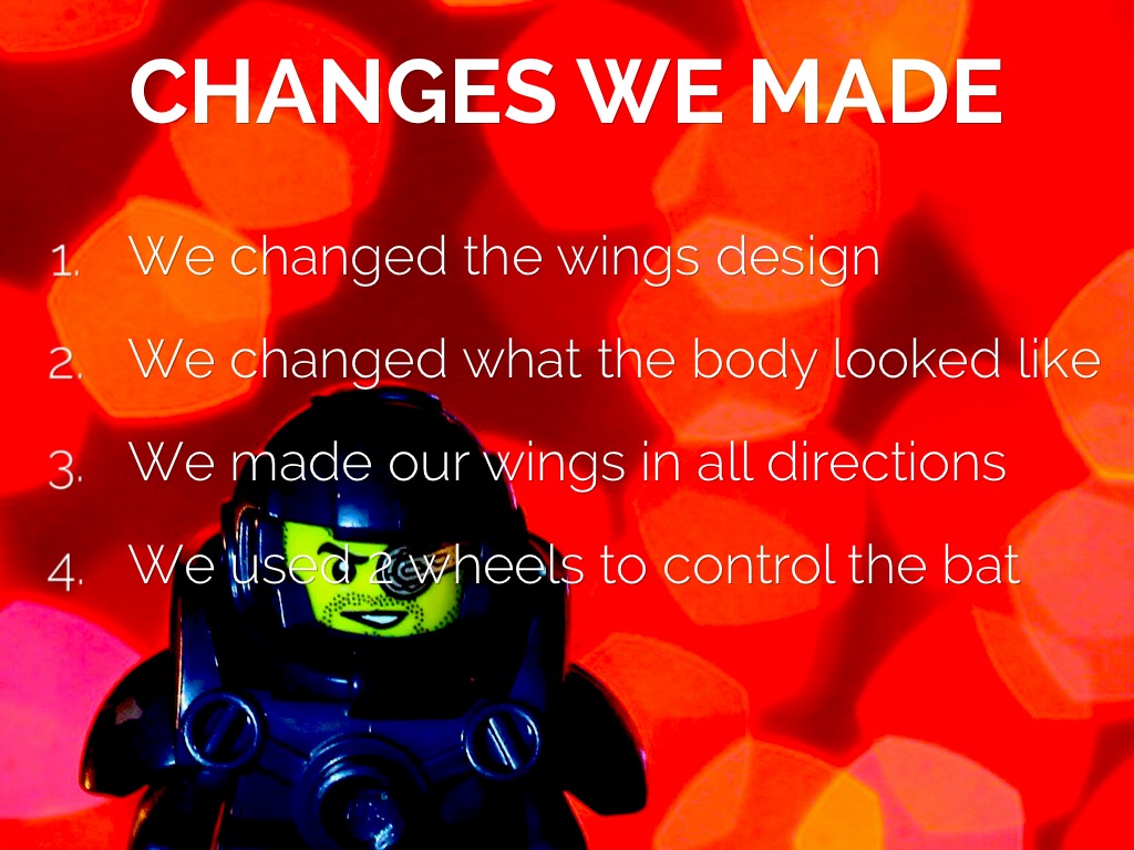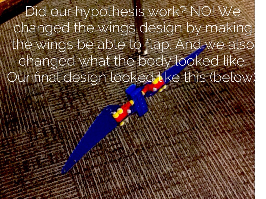 Did our hypothesis work? NO! We changed the wings design by making the wings be able to flap. And we also changed what the body looked like. Our final design looked like this (below).