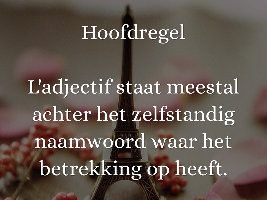 L'adjectif staat meestal achter het zelfstandig naamwoord waar het betrekking op heeft.