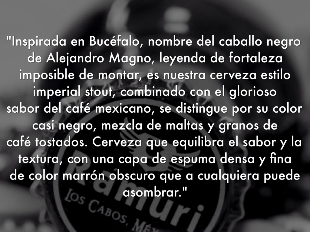 "Inspirada en Bucéfalo, nombre del caballo negro de Alejandro Magno, leyenda de fortaleza