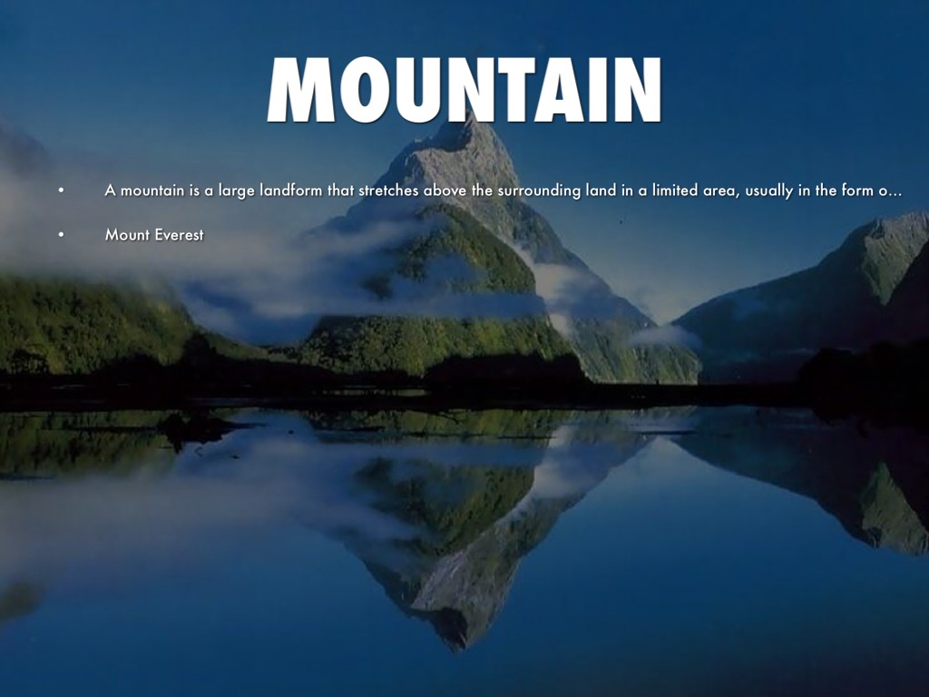 A mountain is a large landform that stretches above the surrounding land in a limited area, usually in the form of a peak.