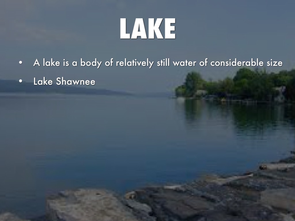 A lake is a body of relatively still water of considerable size