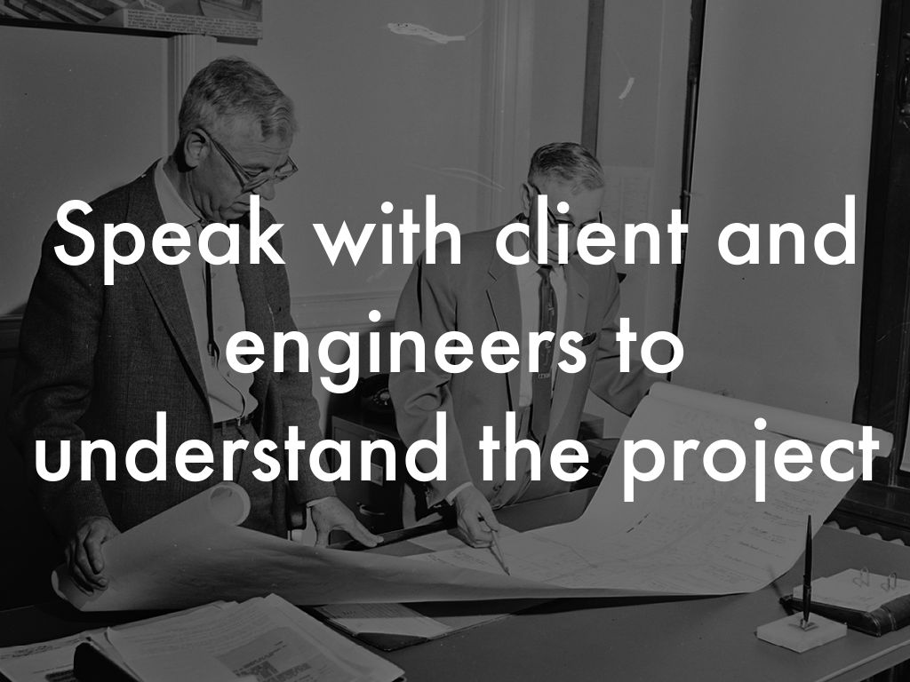 Speak with client and engineers to understand the project