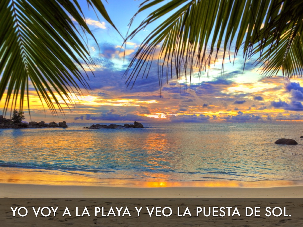 YO VOY A LA PLAYA Y VEO LA PUESTA DE SOL.