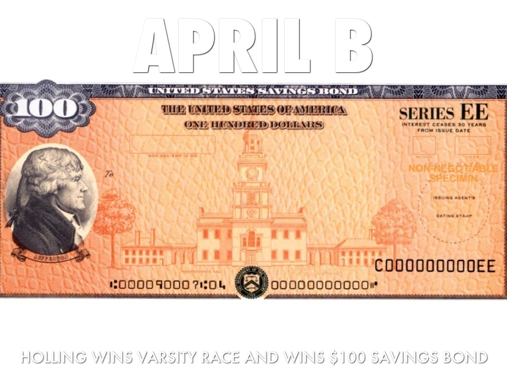 HOLLING WINS VARSITY RACE AND WINS $100 SAVINGS BOND