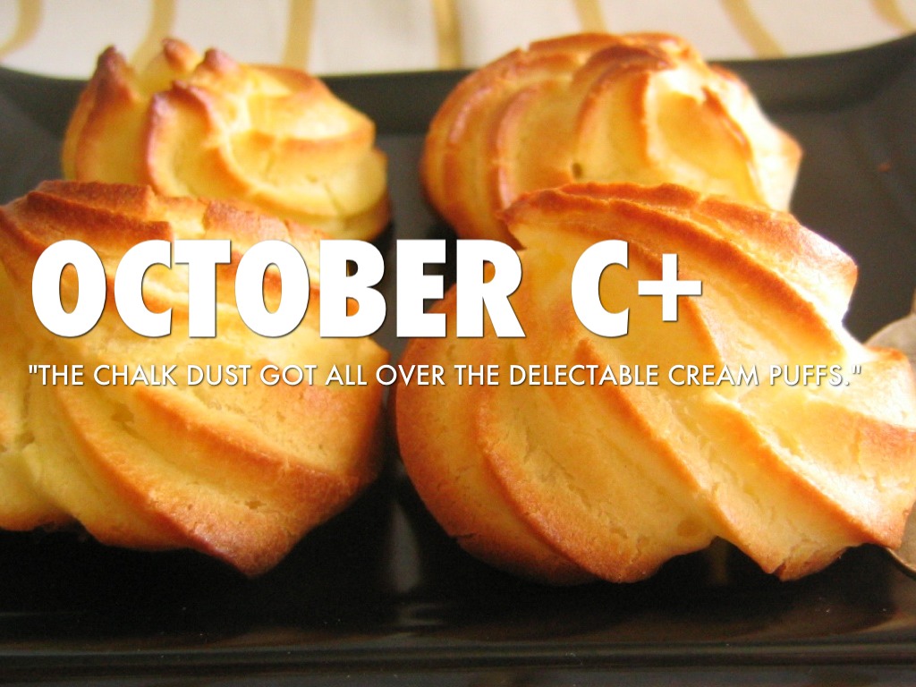 "THE CHALK DUST GOT ALL OVER THE DELECTABLE CREAM PUFFS."