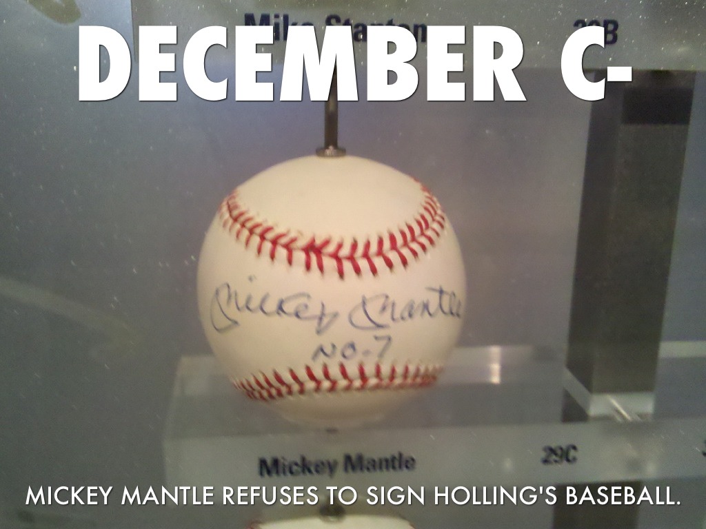 MICKEY MANTLE REFUSES TO SIGN HOLLING'S BASEBALL.