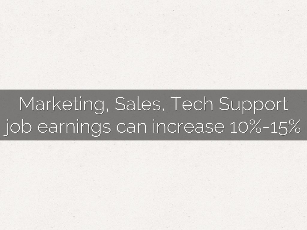 Marketing, Sales, Tech Support job earnings can increase 10%-15%