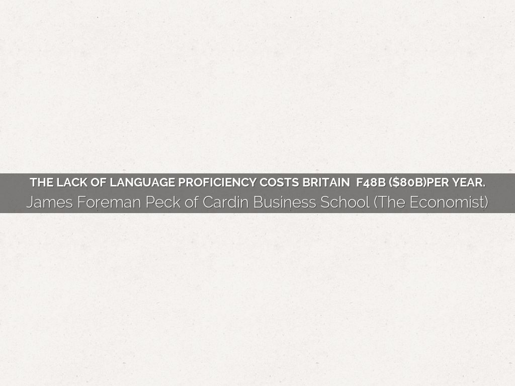 tHE LACK OF LANGUAGE PROFICIENCY COSTS bRITAIN f48b ($80b)PER YEAR.