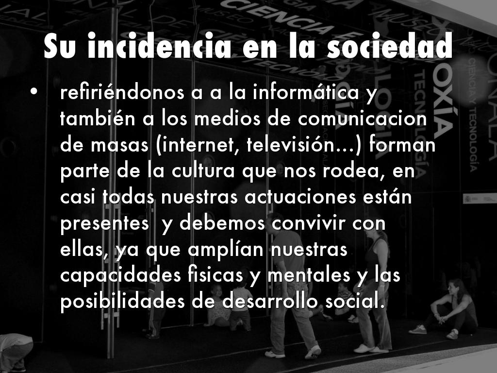 refiriéndonos a a la informática y también a los medios de comunicacion de masas (internet, televisión…) forman parte de la cultura que nos rodea, en casi todas nuestras actuaciones están presentes y debemos convivir con ellas, ya que amplían nuestras capacidades fisicas y mentales y las posibilidades de desarrollo social.