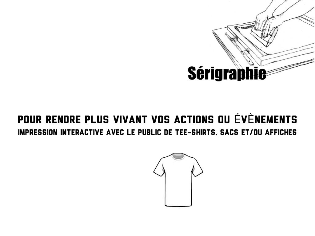 impression interactive avec le public de tee-shirts, sacs et/ou affiches