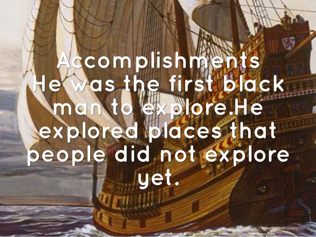 Estevanico sailed from Spain with Panfio de Narvaez and Alvar Nunez Cabeza deVaca, his masters.
