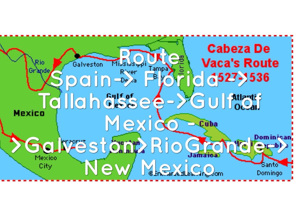Spain-> Florida -> Tallahassee->Gulf of Mexico ->Galveston>RioGrande-> New Mexico