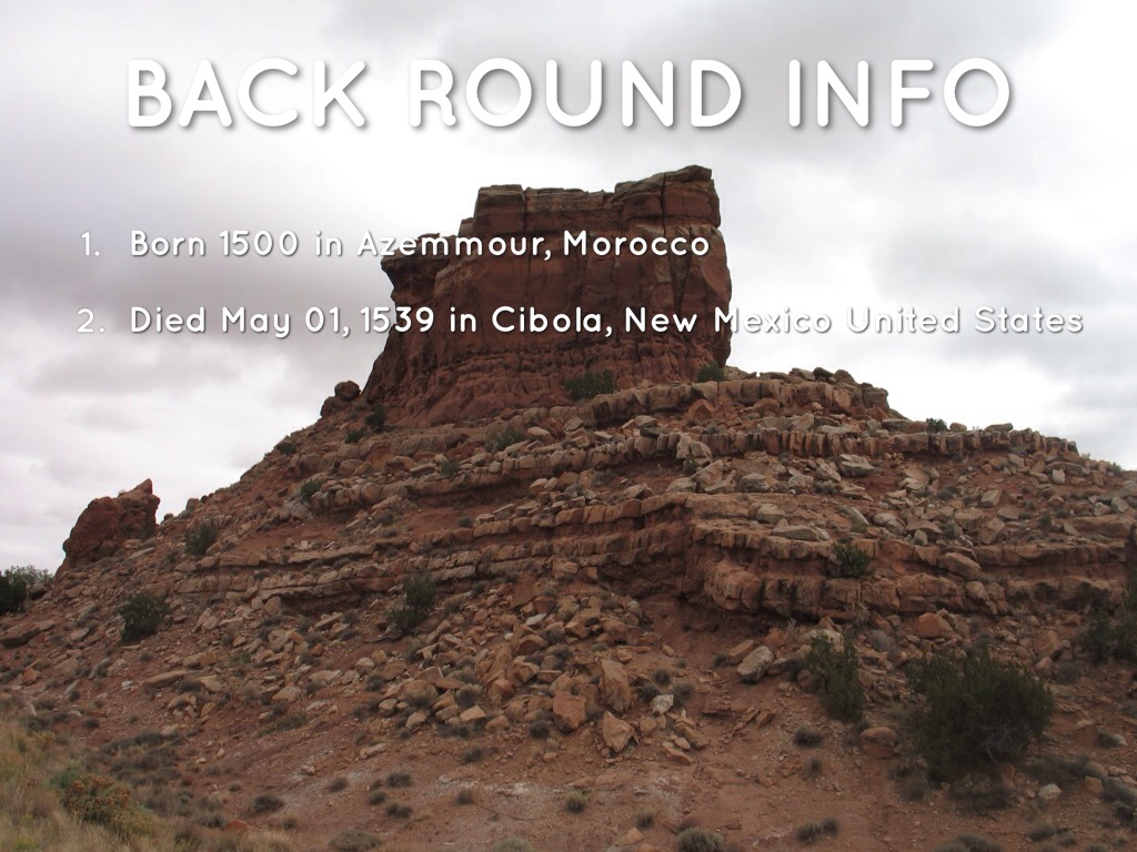 1513, when Estevanico was only 10 years old. Sold into slavery in Spain, Estevanico became the personal servant and good friend of Andres de Dorantes of Bejar del Castanar.