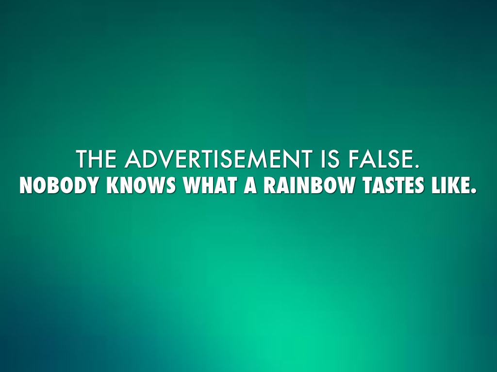 IF YOU CAN'T TASTE THE RAINBOW, THEN IT'S NOT SKITTLES.