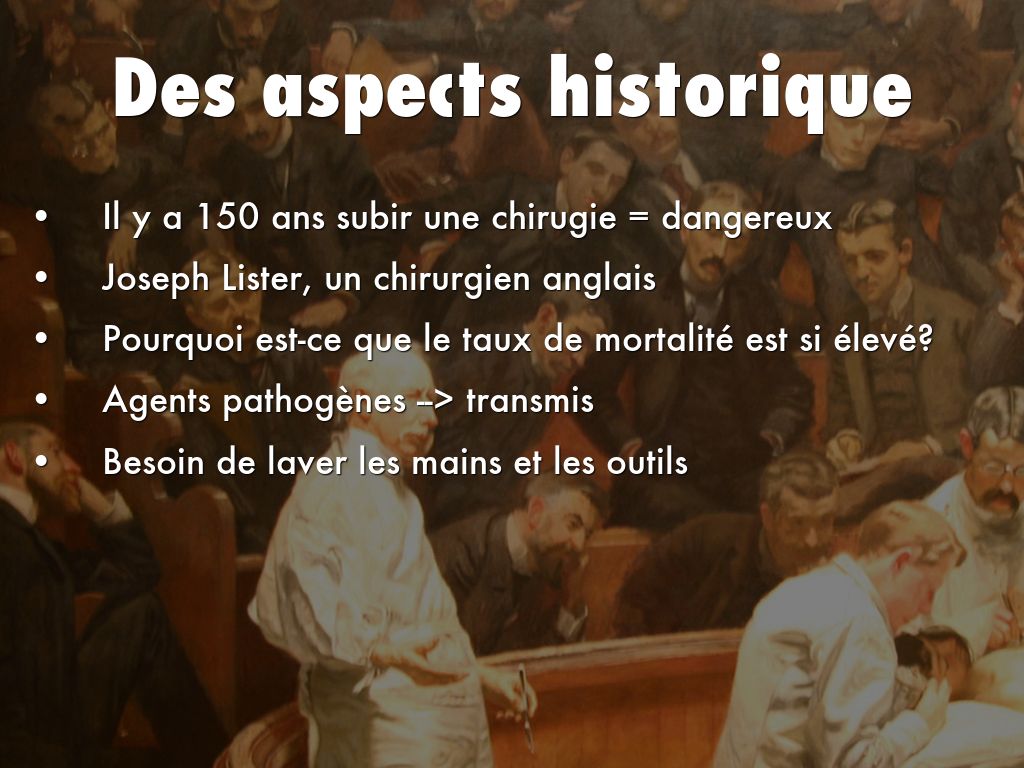 - Il y a 150 ans subir une chirugie = dangereux