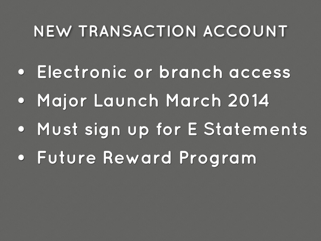 New acc soft launch Dec, major March, digital on-line and branch, No few if $2k or HL, no paper statements must register for E statements, all accounts will become E statements, called ZIP account, portrait shape, 2 colours, brown and red, choice of colour, will have spend tracker on where they have spent their money. There will be a reward cash back but not ready for launch but they must have the ZIP card but if they keep their current visa they will not be eligible.