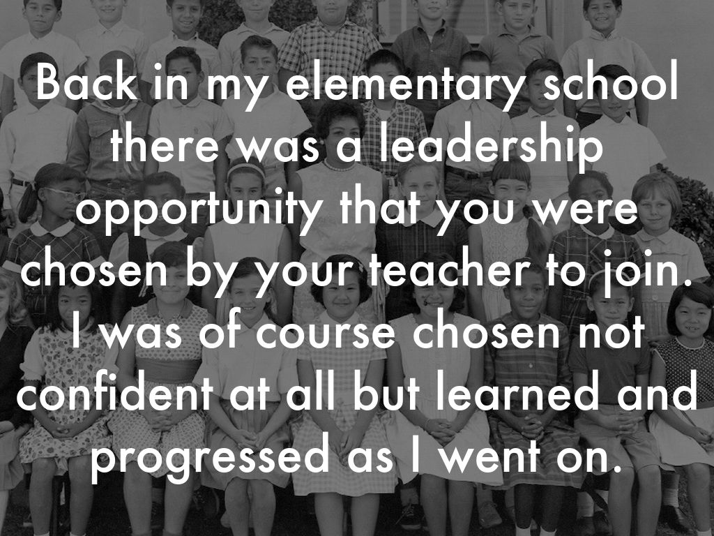 Back in my elementary school there was a leadership opportunity that you were chosen by your teacher to join. I was of course chosen not confident at all but learned and progressed as I went on.