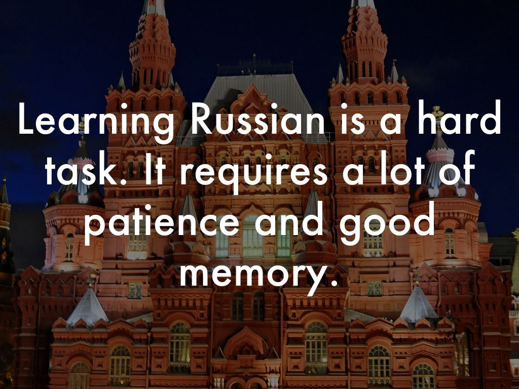 Learning Russian is a hard task. It requires a lot of patience and good memory.