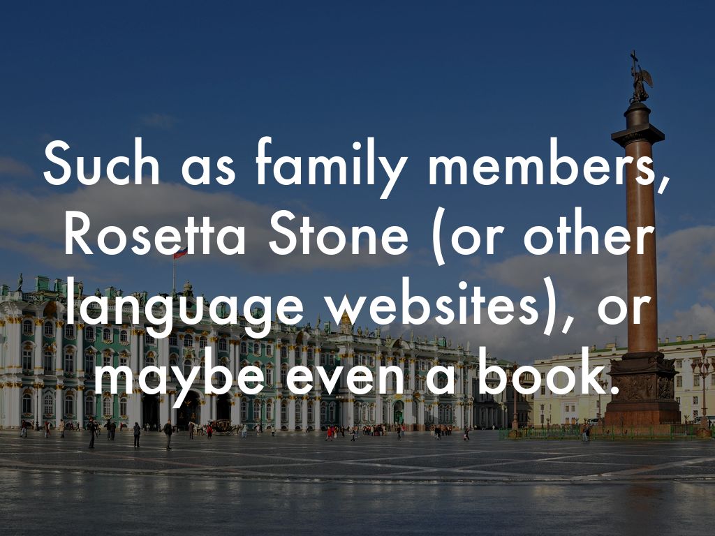 Such as family members, Rosetta Stone (or other language websites), or maybe even a book.