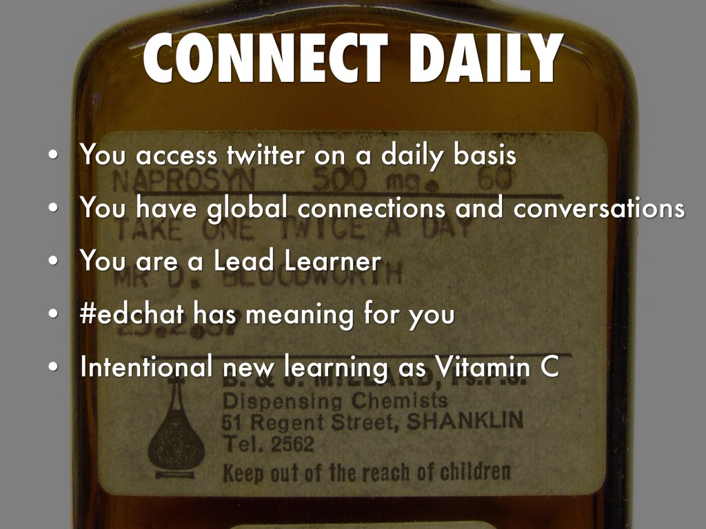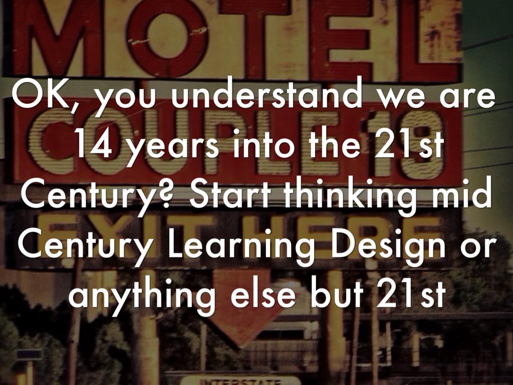Rather than focus on where we need to head as contemporary Educators in some horizon we are chasing, why not focus on some of the things we need to be doing today? You know we are 14 years into the 21st Century so we need a new label for what it is that we are supposed to be doing. Find a new label as soon as you can. I like the notion of Teachers and Educators becoming Learning Architects where being a Lead Learner is part of what you do on a daily basis.