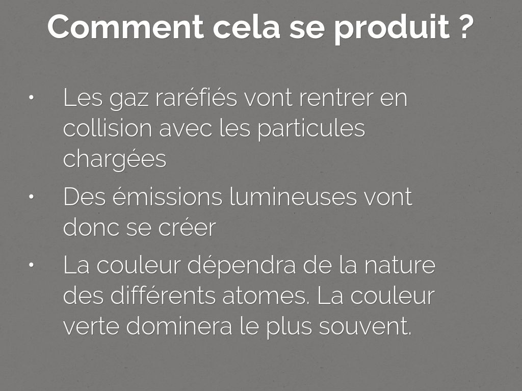• Les gaz raréfiés vont rentrer en collision avec les particules chargées