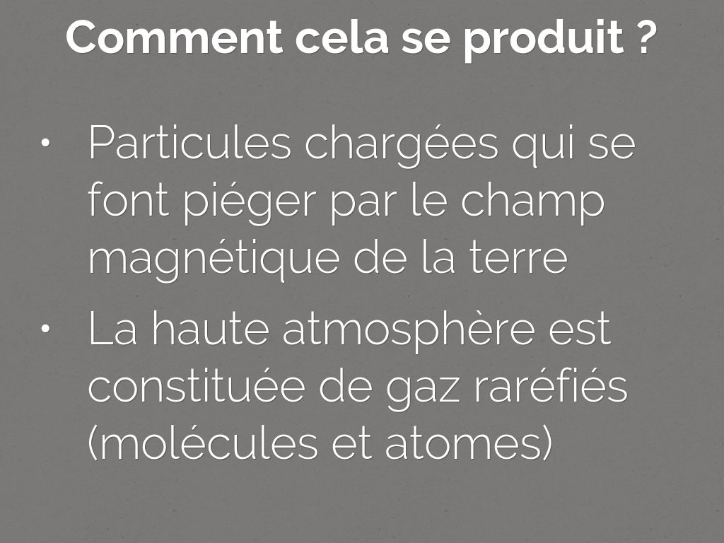 • Particules chargées qui se font piéger par le champ magnétique de la terre