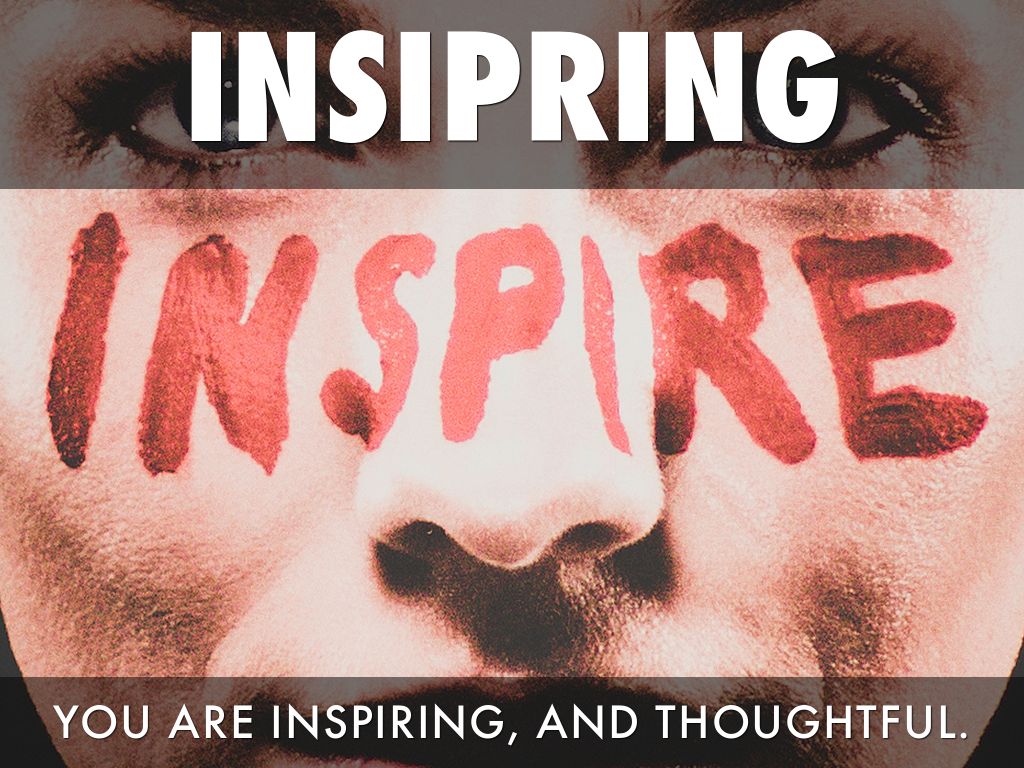 YOU ARE INSPIRING, AND THOUGHTFUL.