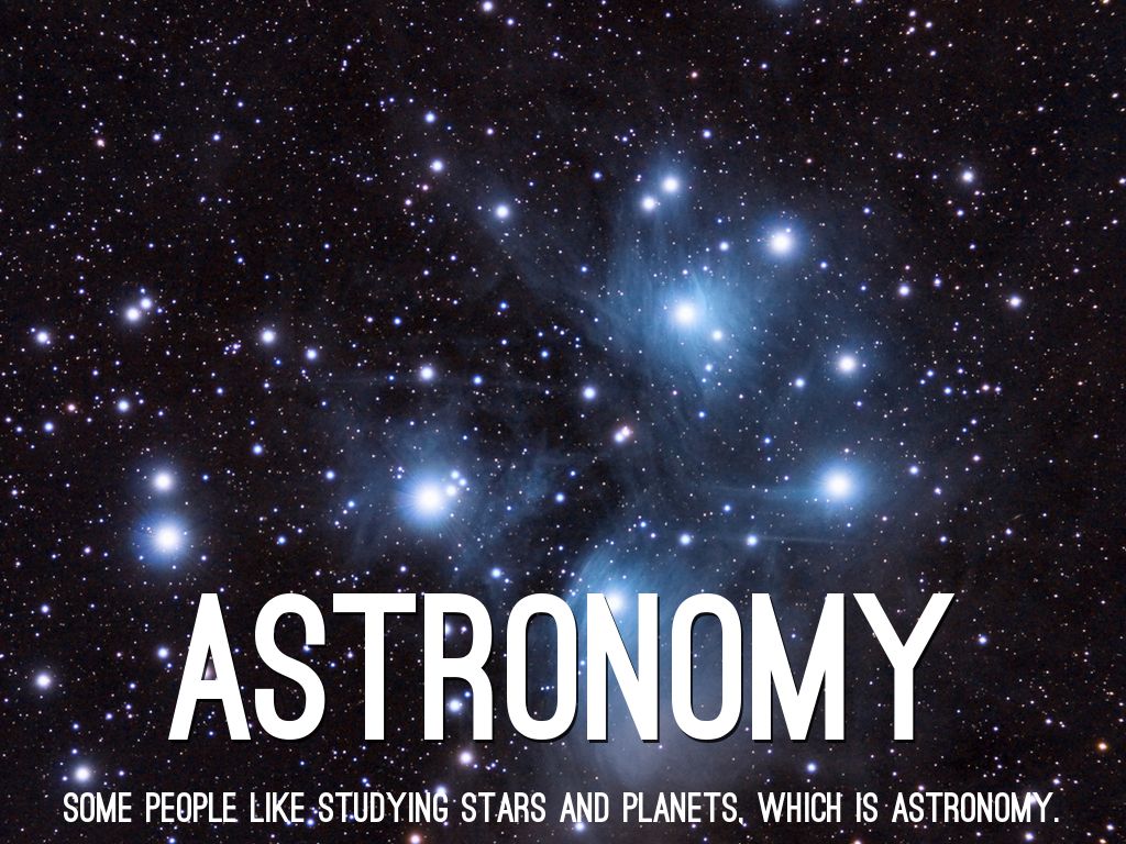 SOME PEOPLE LIKE STUDYING STARS AND PLANETS, WHICH IS ASTRONOMY.