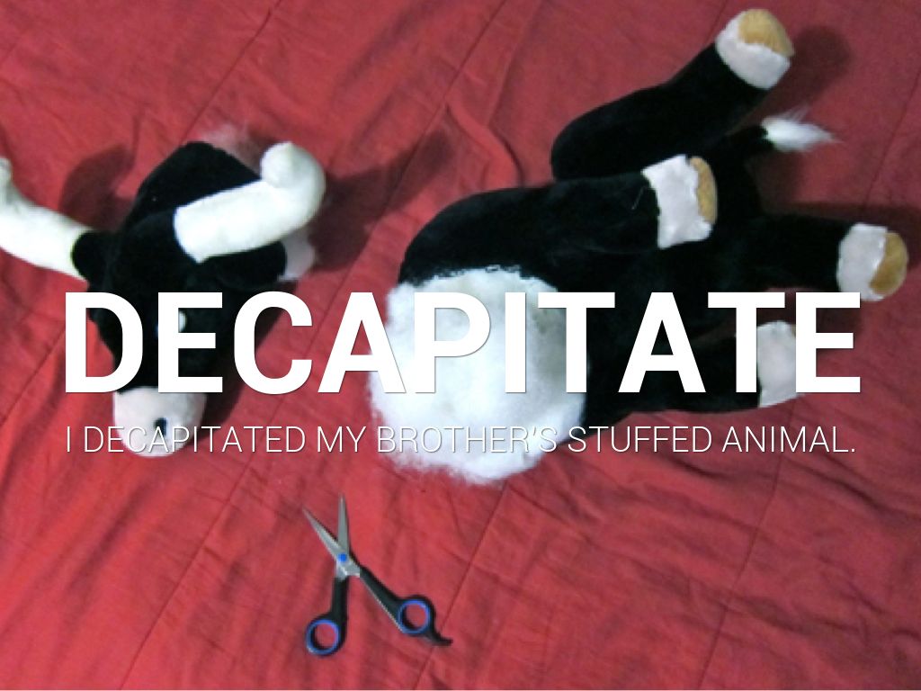 I DECAPITATED MY BROTHER'S STUFFED ANIMAL.