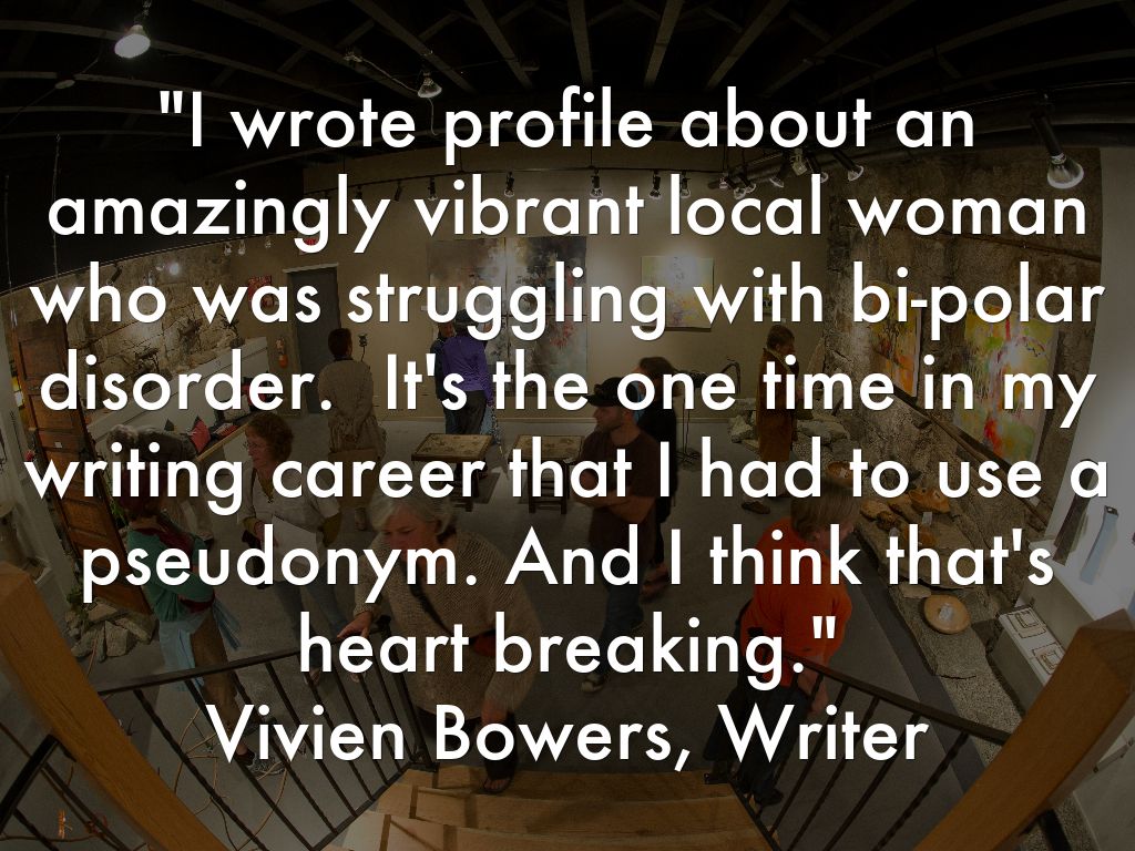 "I wrote profile about an amazingly vibrant local woman who was struggling with bi-polar disorder. It's the one time in my writing career that I had to use a pseudonym. And I think that's heart breaking."