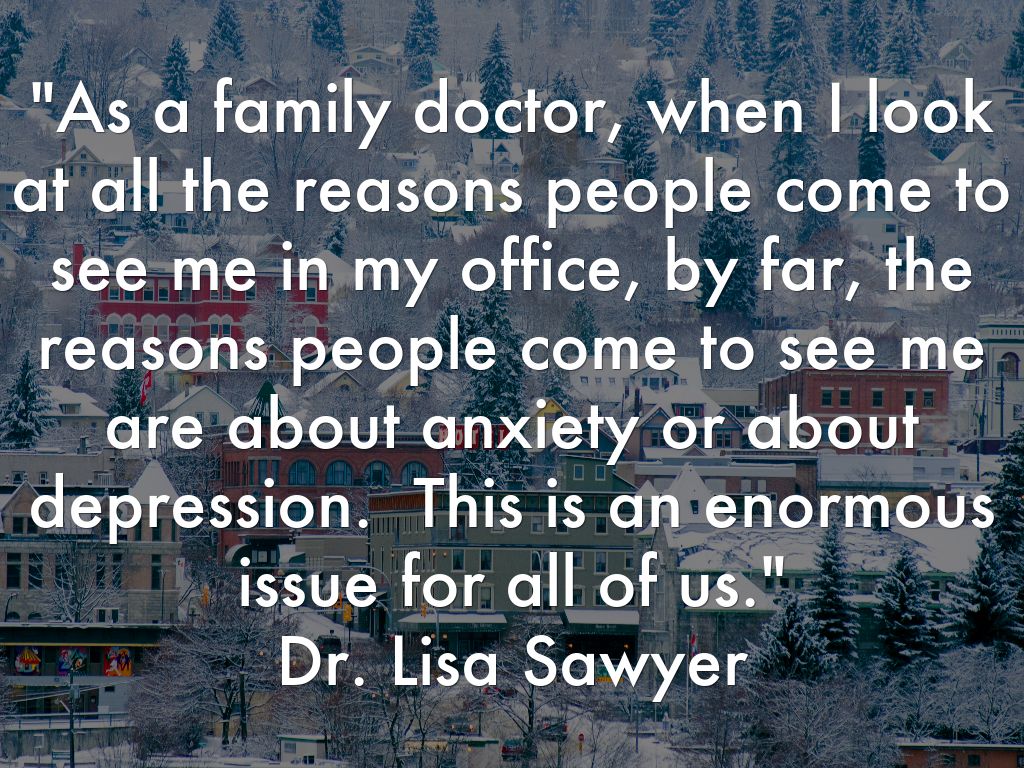 "As a family doctor, when I look at all the reasons people come to see me in my office, by far, the reasons people come to see me are about anxiety or about depression. This is an enormous issue for all of us."