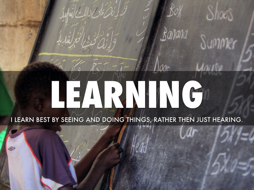 I LEARN BEST BY SEEING AND DOING THINGS, RATHER THEN JUST HEARING.
