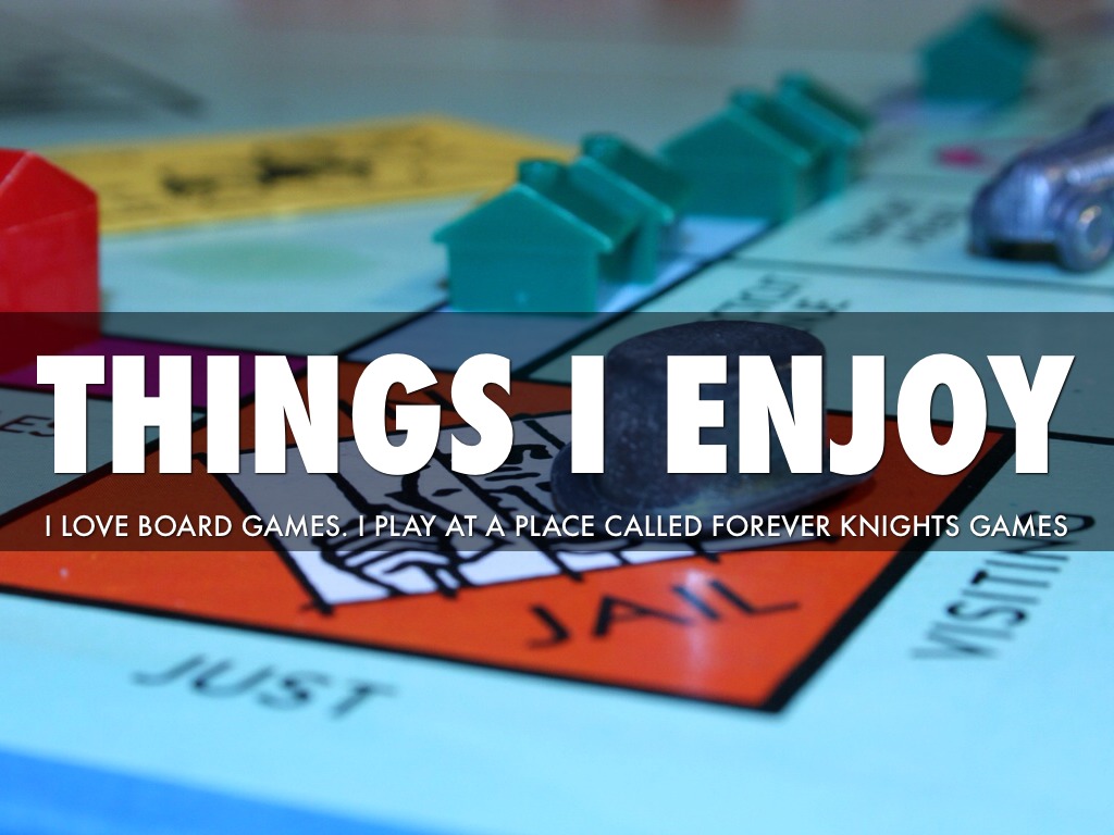 I LOVE BOARD GAMES. I PLAY AT A PLACE CALLED FOREVER KNIGHTS GAMES