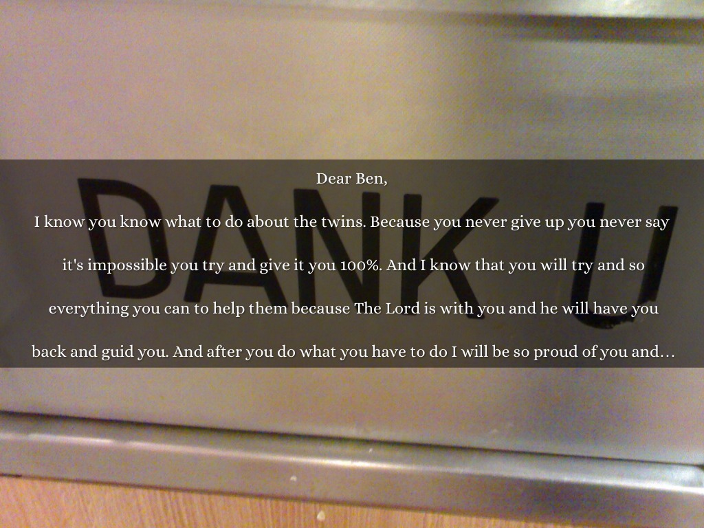 When I got your letter it was hard for me to know that there was someone watching over