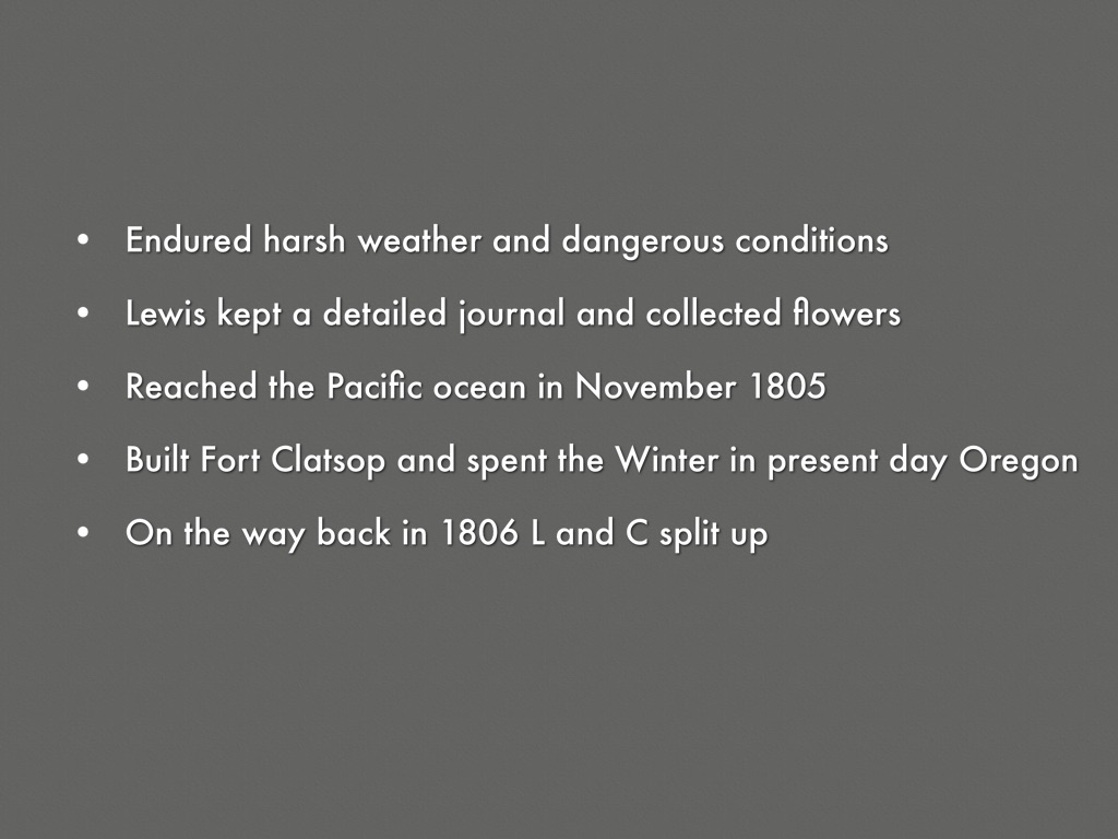Built Fort Clatsop and spent the Winter in present day Oregon
