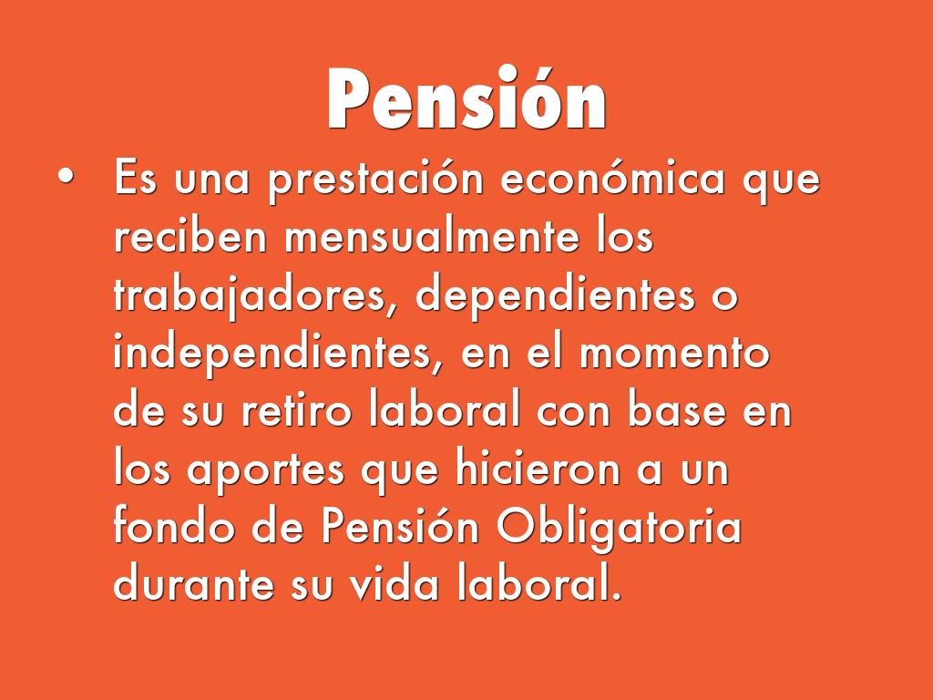 Es una prestación económica que reciben mensualmente los trabajadores, dependientes o independientes, en el momento de su retiro laboral con base en los aportes que hicieron a un fondo de Pensión Obligatoria durante su vida laboral.