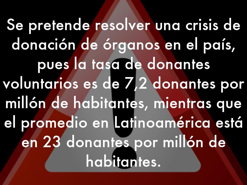 Se pretende resolver una crisis de donación de órganos en el país, pues la tasa de donantes voluntarios es de 7,2 donantes por millón de habitantes, mientras que el promedio en Latinoamérica está en 23 donantes por millón de habitantes.