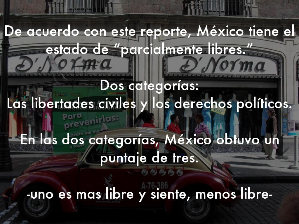 Asimismo, clasifica a los Estados según su nivel de libertad como “libres”, parcialmente libres y “no libres.”