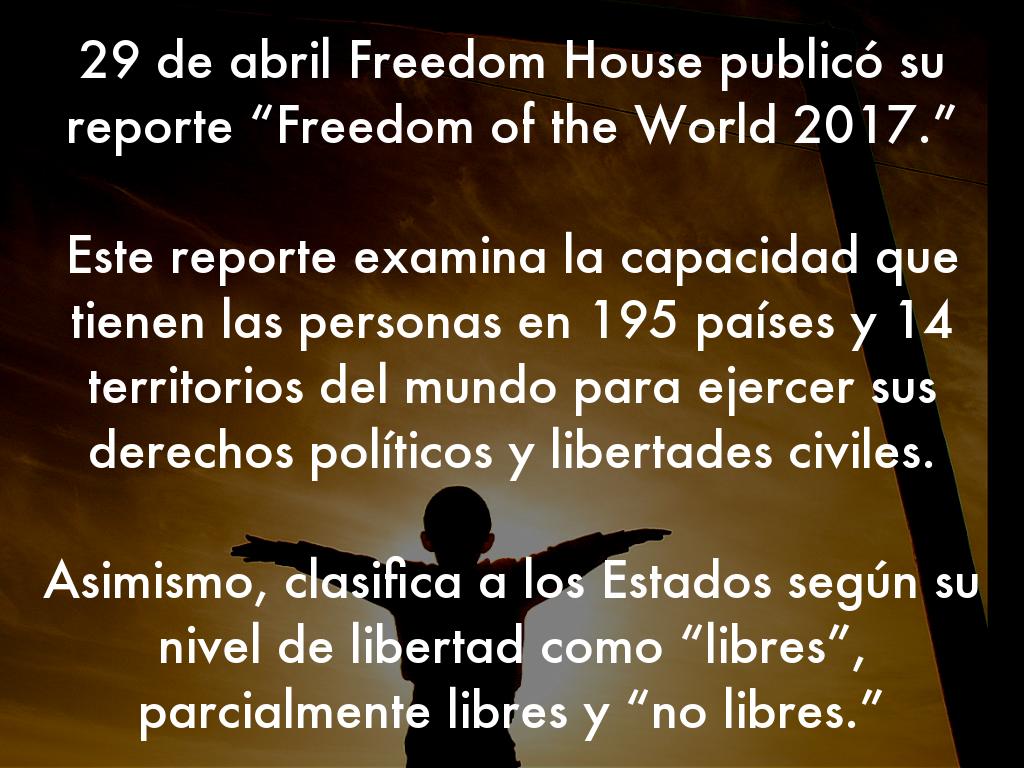 29 de abril Freedom House publicó su reporte “Freedom of the World 2017.”