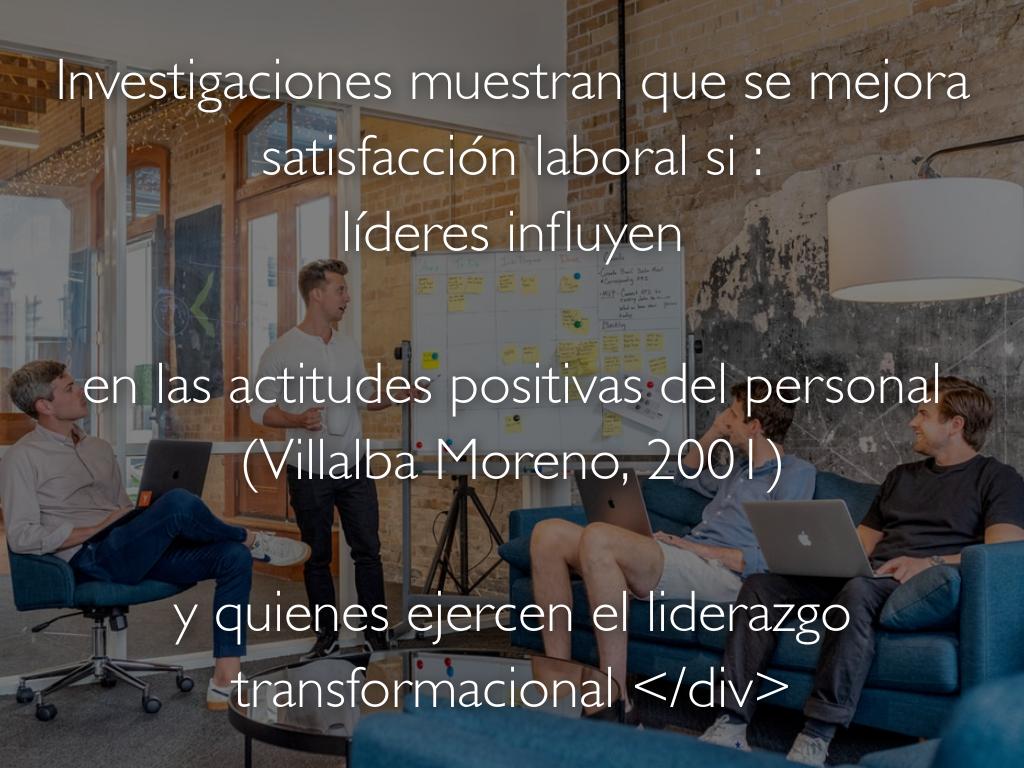 Investigaciones muestran que se mejora satisfacción laboral si : líderes influyen