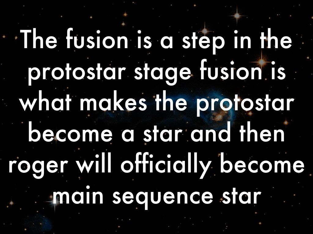The fusion is a step in the protostar stage fusion is what makes the protostar become a star and then roger will officially become main sequence star