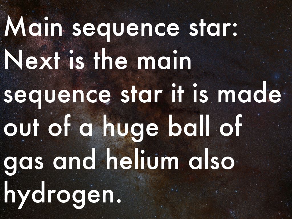 Main sequence star: Next is the main sequence star it is made out of a huge ball of gas and helium also hydrogen.